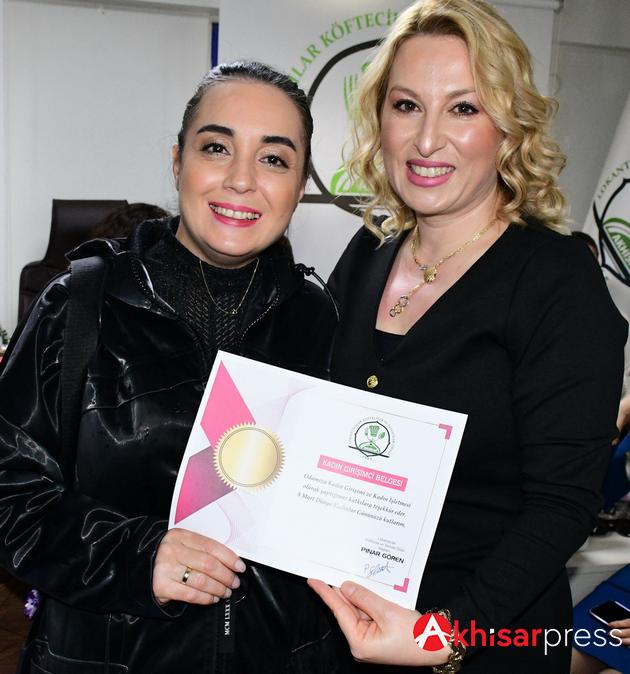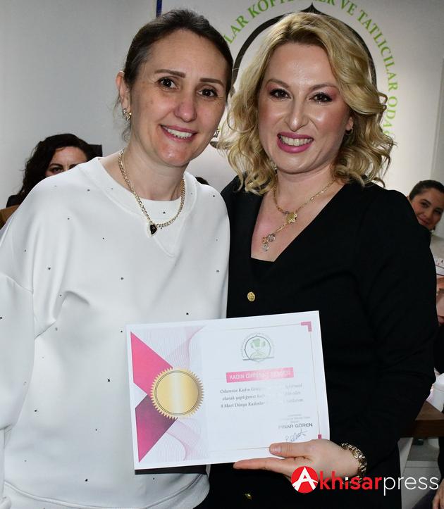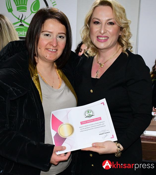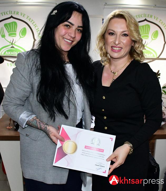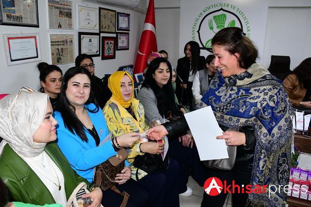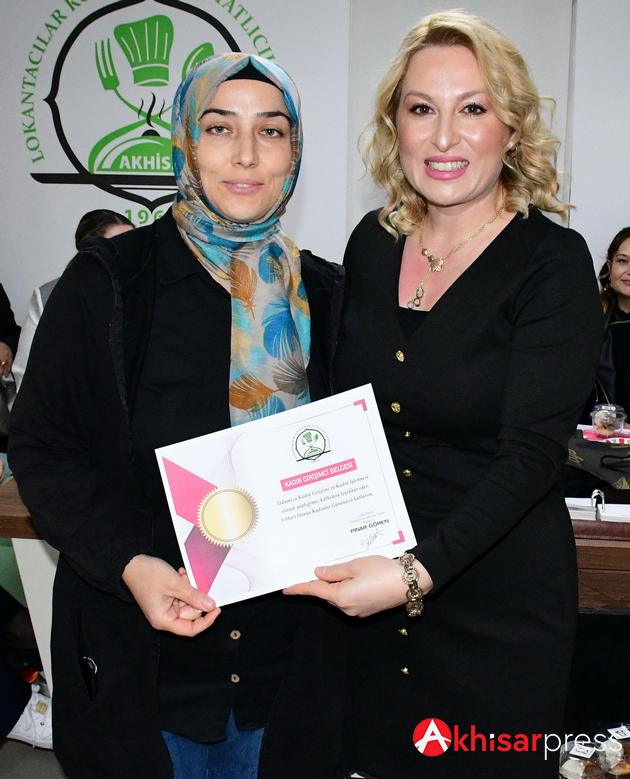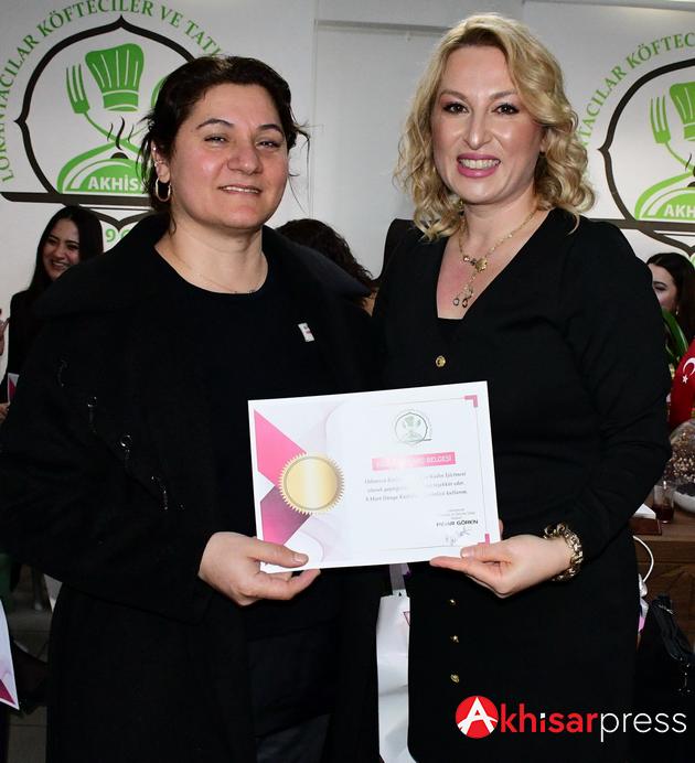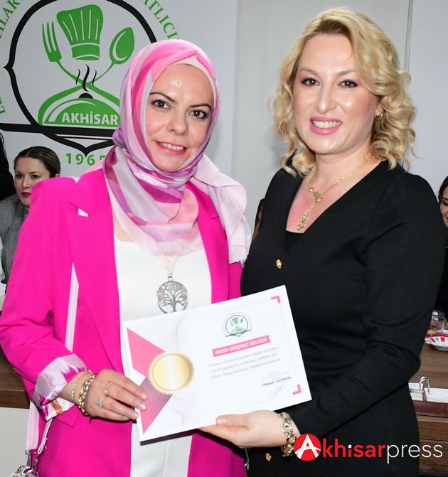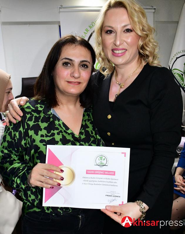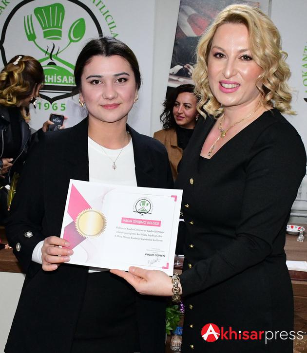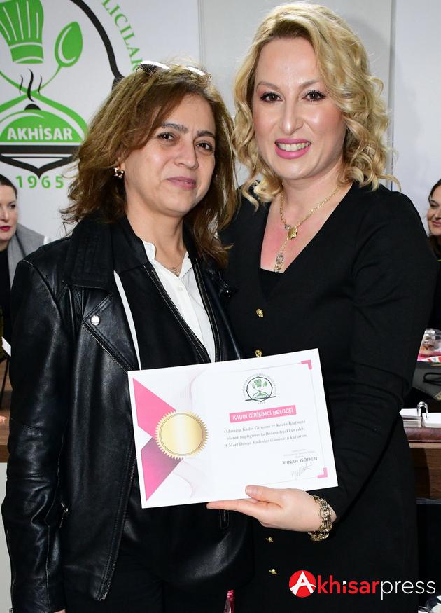 Akhisar Lokantacılar, Köfteciler, Tatlıcılar Odası Başkanı ve TESK (Türkiye Esnaf ve Sanatkârlar Konfederasyonu) Kadın Esnaf Kurulu Üyesi Pınar Gören, 8 Mart Dünya Kadınlar gününde Oda Lokalinde yaklaşık 150 kadın esnafa girişimcilik belgesi ve hediyeler takdim ederek kadınlar gününü kutladı.