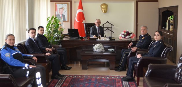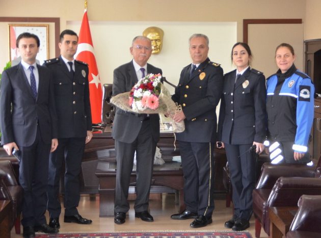 Emniyet Müdür Sayım Başaran, ziyarette Kaymakam Sabit Kaya’ya, bir buket çiçek takdim etti ve 177. yıl Polis haftası etkinlikler hakkında bilgi verdi.