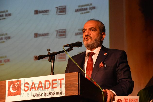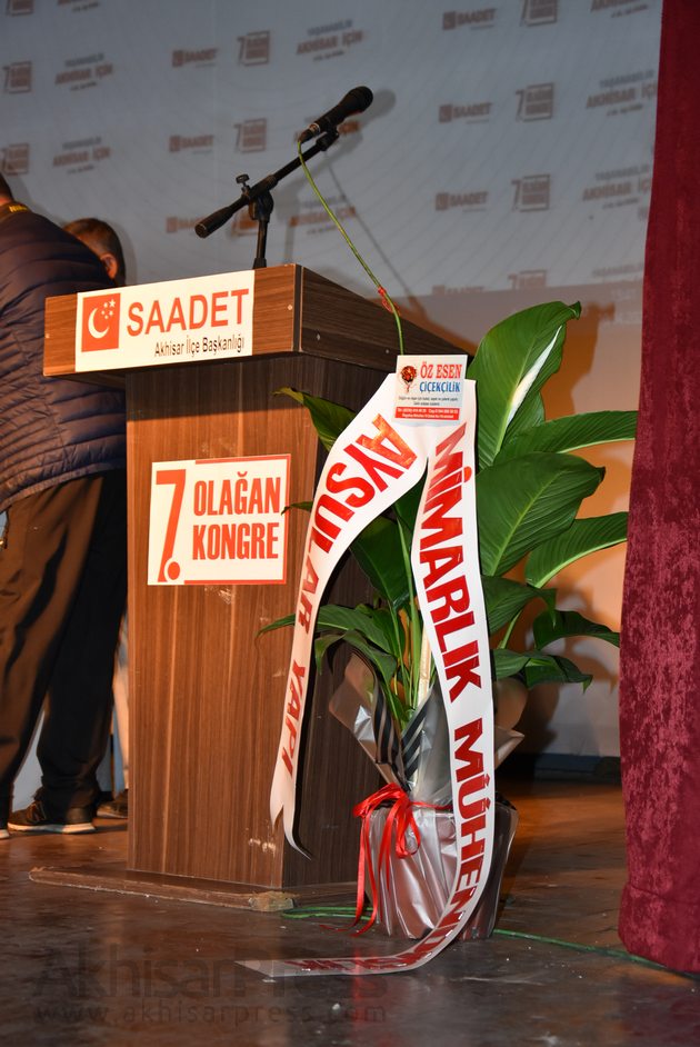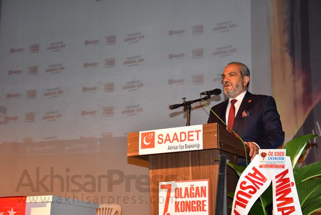 Kongrede konuşan Saadet Partisi Genel İdare Kurulu üyesi Salih Berber;" Hepinizin rızasını kazanma bu doğrultuda da hem bu dünyada hem de ahirette hem kendimiz hem de insanlık için güzellikler, iyilikler doğru olan tecellisi için bu çalışmaları yapıyoruz. Allah hepinizden razı olsun, ben şuanda bir konuşması olarak şu güzelliği ve mutluluğu yaşıyorum. İnanıyorum ki salonumuzdaki tüm kardeşlerimiz ben buradan ayrılırken yanıma yaklaşıp da herhangi bir ihalede aracılık yapmamı istemeyecektir. Buradaki kardeşlerimiz Allah rızası için tüm insanlığın dünya ve ahiret saadeti için yıllardan beri koşturan kardeşlerimiz veya ilk kez bugün gelmiş kardeşlerimizden de müteşekkiriz. Bundan dolayı sizi tebrik ediyorum, Allah hepinizden razı olsun. Bu kadar samimi duygularla bu çalışmayı yürütüyorsunuz. Elhamdülillah bu güzellikten dolayı da biz dün vardık, bugün varız yarın da var olacağız. Bizi sayılarla, rakamlarla, gramlarla santimetrelerle ölçmesinler. Kalbimizin, yüreğimizin zenginliği ve Allah için koşturmamızın heyecanı ile değerlendirsinler. Değerli kardeşlerim şuan bir ilçemizin kongresini yapıyoruz. Ama inanıyoruz ki bizi bu çalışmamız tüm dünyada hakkın ve adaletin hakim olmasına vesile olacak bir basamaktır. Biz inancımızı çalışmalarımızın temelini oturtmuşuz, biliyoruz ki son peygamber gelişi ile beraber artık dünyanın tamamı tek bir kavim gibidir. Bunun sonucu olarak inanç anlamında dünyanın her tarafı birdir, ya her tarafta huzur bulacağız, yada her yerde sıkıntı çekeceğiz. Akhisar'ımızın herhangi bir mahallesinde huzurlu yaşabilmemiz için dünyada da huzurun olması lazım. Dünyada huzur yoksa ilçemizde de, mahallemizde de ve evimizde de huzur yoktur" dedi.