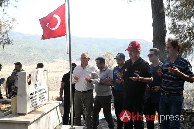 Vali Enver Ünlü, yangında tamamen yanan Karayakup Mahallesi'nde, alevlerin zarar vermediği tek yer olan Şehit Piyade Er Halil İbrahim Ertaş'ın kabrini de ziyaret etti. 2010 yılında Hakkâri'nin Çukurca ilçesinde şehit düşen Ertaş için dua eden Ünlü, şehitliğin dinimizdeki en yüksek mertebe olduğunu belirterek, vatan uğruna hayatını kaybeden tüm şehitlere Allah’tan rahmet diledi.