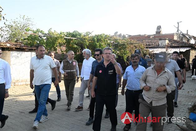 Vali Ünlü, rüzgârın etkisiyle 12 mahalleyi tehdit eden Gördes-Salihli yangınının en çok zarar verdiği Boyalı ve Karayakup mahallelerinde yapılan hasar tespit çalışmaları hakkında yetkililerden bilgi aldı. Yangından etkilenen vatandaşlara geçmiş olsun dileklerini ileten Vali Ünlü, onların istek ve taleplerini dinleyerek, devletin yanlarında olduğunu vurguladı.