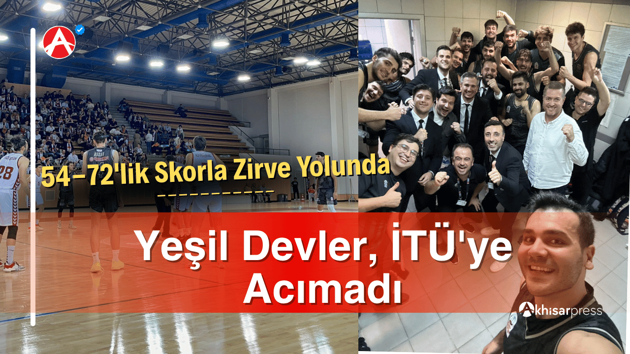 Şehrimizin temsilcisi Akhisar Belediye Basketbol Spor Kulübü, Türk Basketbolunun köklü ekiplerinden İTÜ Basketbol karşısında dominant bir galibiyet aldı. Baştan sona üstün götürdüğü karşılaşmada Yeşil Devler, rakibini 54-72 skorla mağlup ederek şampiyonluk hedefine emin adımlarla ilerlediğini gösterdi.