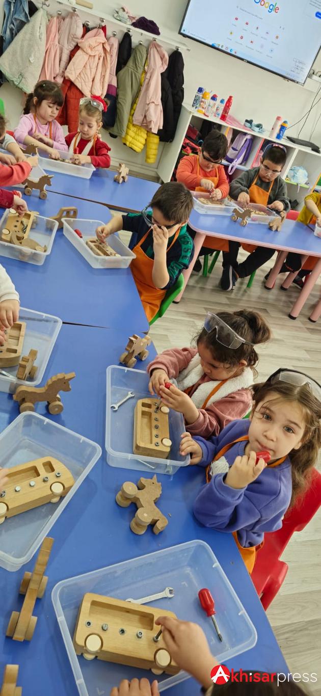 Okulun ahşap oyuncak atölyesine katılan öğrenciler, kendi oyuncaklarını yaptılar. Hangi oyuncakları yapacaklarına kendileri karar veren öğrencilere, özgüvenlerini artırma ve eksiklerini tamamlama fırsatı sunuldu. Bu sayede öğrenciler, yaparak yaşayarak öğrenmenin keyfini yaşadılar ve evlerine götürdükleri oyuncaklarını ailelerine gururla gösterdiler.