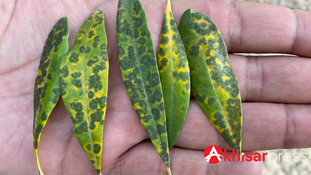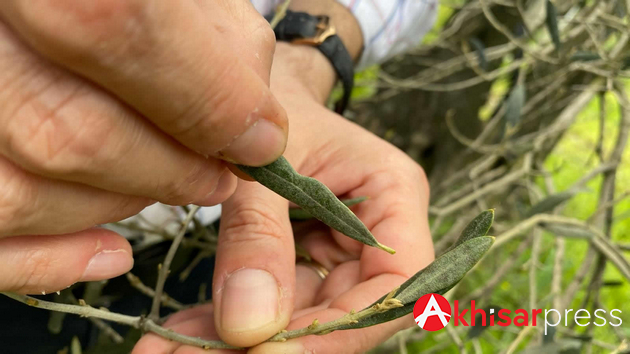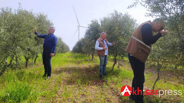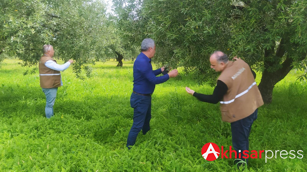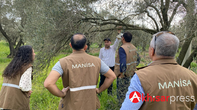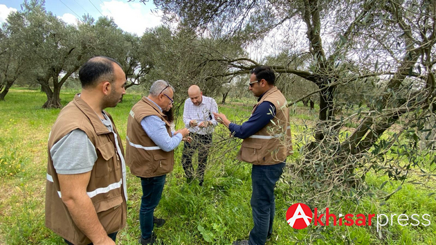 Akhisar İlçe Tarım ve Orman Müdürü Ahmet Kılıç’ın koordine ettiği çalışma kapsamında, Bornova Zirai Mücadele Araştırma Enstitüsü Müdürlüğü’nden konu uzmanı Dr. Barbaros Çetinel, Manisa il ve Akhisar ilçe tarım müdürlüklerinde görevli ziraat mühendislerinden oluşan bir heyet, zeytin ağaçlarında görülen yaprak dökümünü mercek altına aldı.